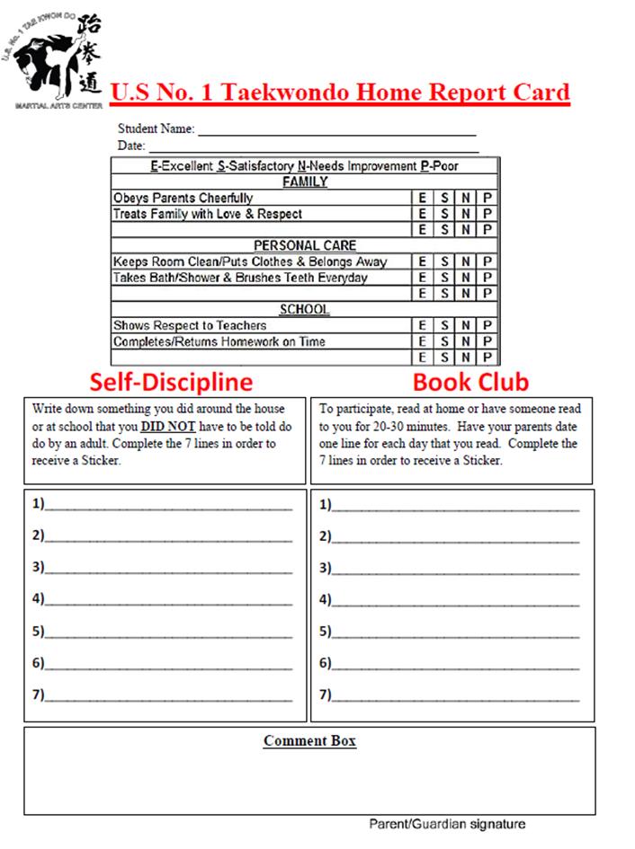 *NOTE: Sections 2 and 3 (Self Discipline and Book Club) should be filled out throughout the week,